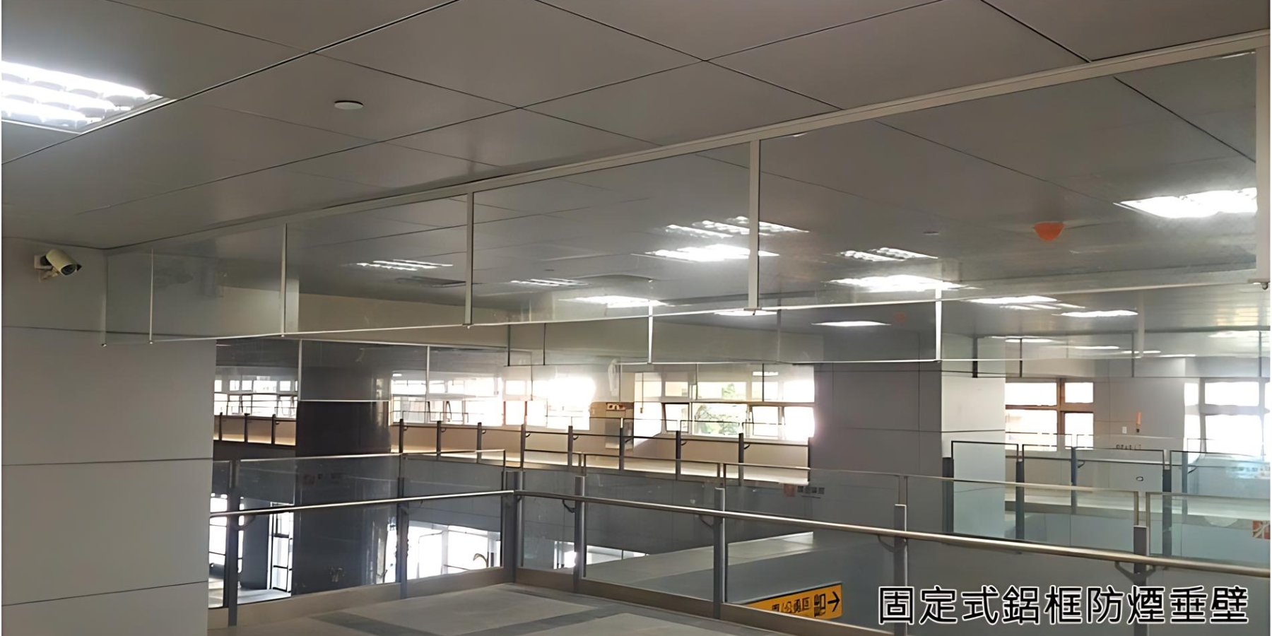 服務項目:固定式鋁框防煙垂壁、固定式不鏽鋼精緻型防煙垂壁,可依客戶要求及配合現場使用玻璃、鋁板、鍍鋅鐵板、一級耐燃矽酸鈣板...等不燃材質施作。固定式鋁框防煙垂壁固定式不鏽鋼精緻型防煙垂壁